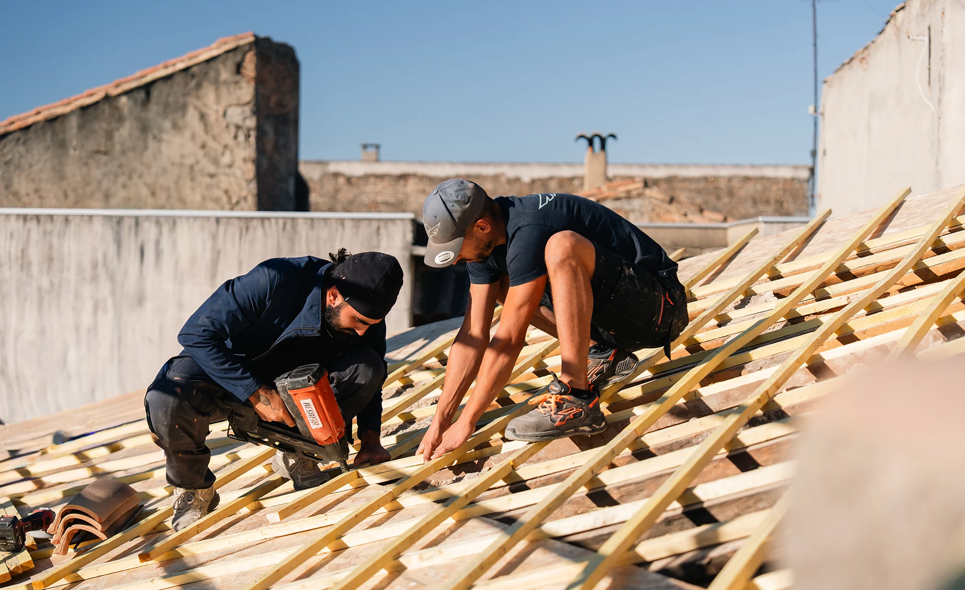 Remplacement de tuiles, consolidation de charpente, reprise d’étanchéité sur des toits anciens ou endommagés.